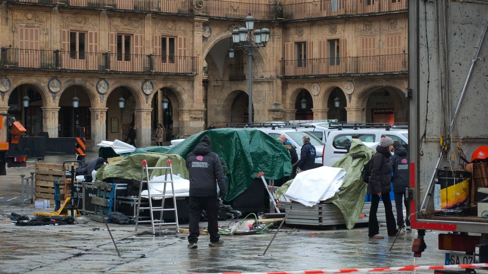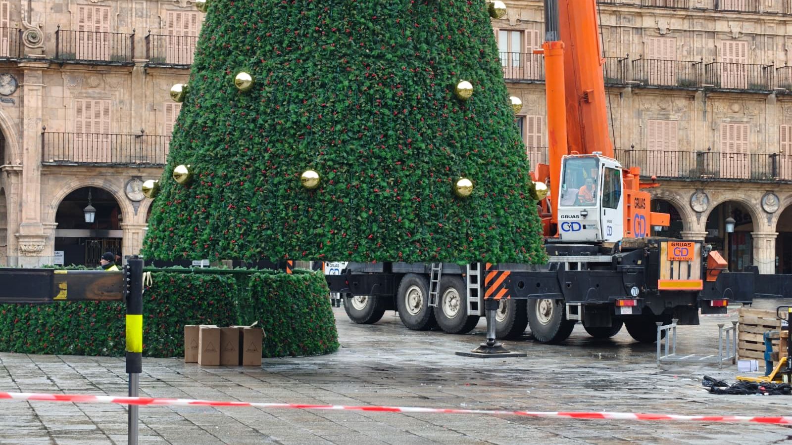 En la mañana de este miércoles, el enorme árbol de Navidad que vestía la Plaza Mayor está siendo desmontado. La Navidad se despide de Salamanca y la ciudad vuelve poco a poco a la rutina