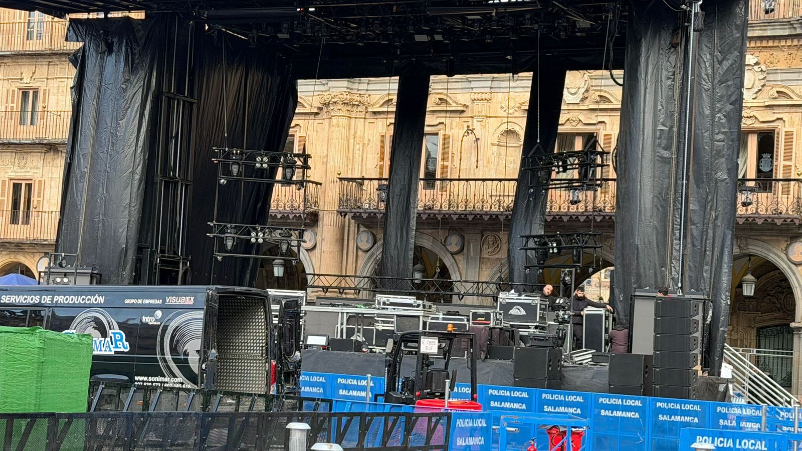La Plaza Mayor ya comienza a vestirse de fiesta para acoger una nueva edición del esperado Fin de Año Universitario.