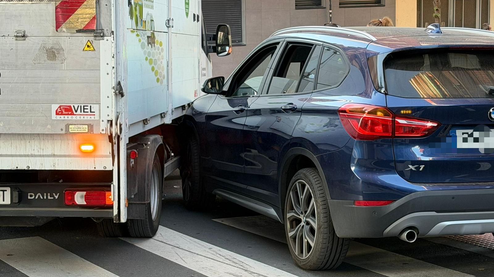 Un choque entre un camión y un coche bloquea el tráfico en la calle Bolivia con Gómez Ulla