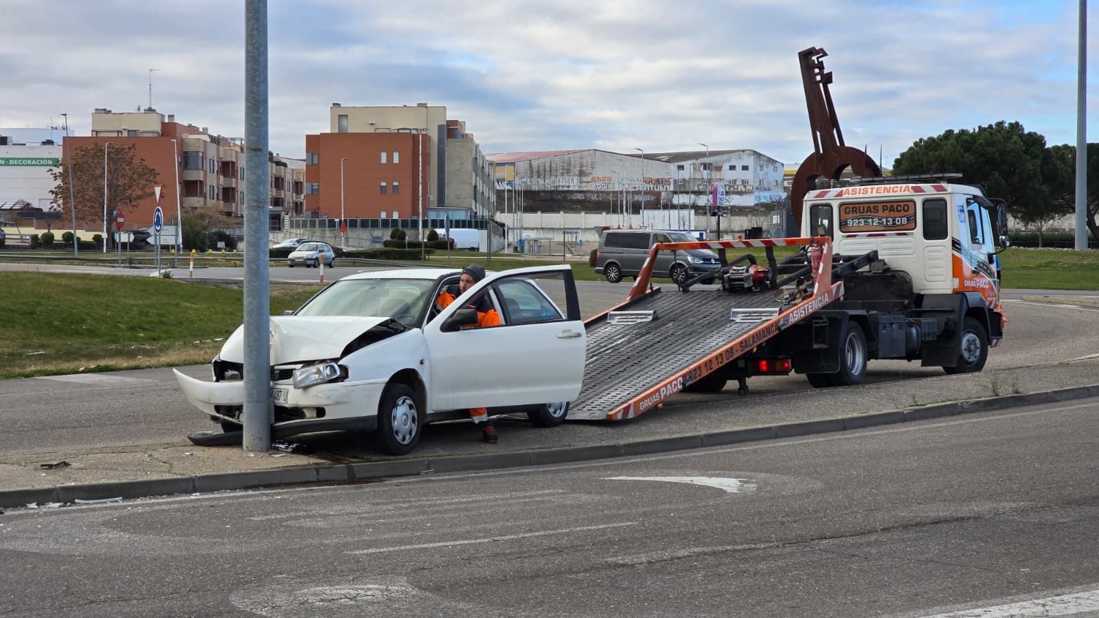 Los hechos han tenido lugar en la Glorieta de las Llaves de la Ciudad y, tal y como han informado fuentes oficiales, el coche implicado ha sufrido una salida de vía chocando, como consecuencia, con una farola.