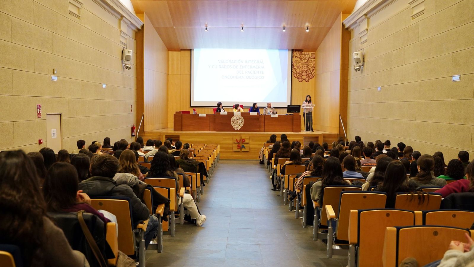 El Grado en Enfermería de la Facultad de Ciencias de la Salud de la Universidad Pontificia de Salamanca (UPSA) ha celebrado sus fiestas en honor a San Juan de Dios, destacando la importancia de la humanización en los cuidados y la atención integral a los pacientes. La jornada comenzó con el Juramento del Código Ético de los estudiantes de primero, y continuó con las jornadas sobre “Valoración Integral y Cuidados Continuos en pacientes oncohematológicos y paliativos”, que contaron con la participación de expertos en la materia.